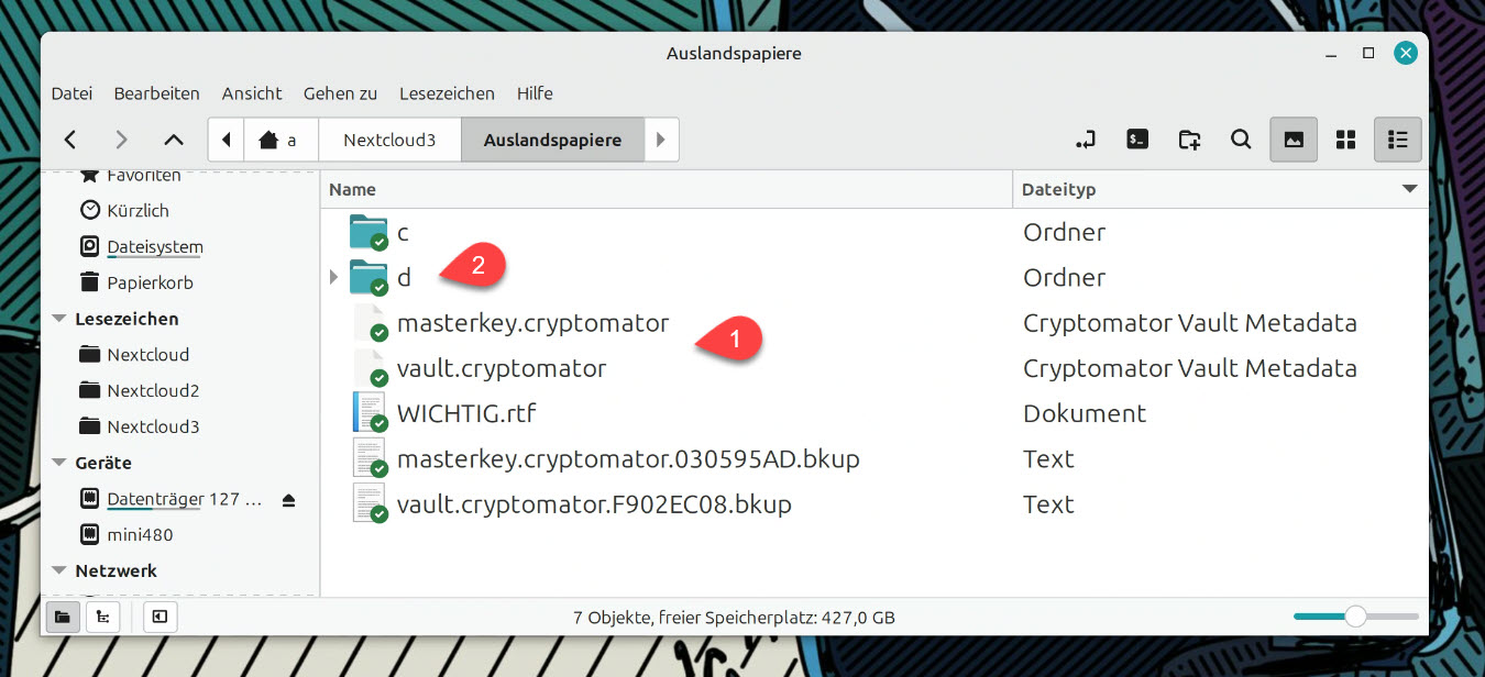 [1] Einführung in Cryptomator: https://gnulinux.ch/cryptomator-daten-sicher-in-der-cloud
