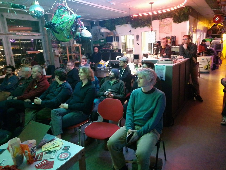 Auch bei der Free Software Foundation Europe in der Lokalgruppe Zürich wurde der Tag gefeiert, und zwar bereits vor zwei Tagen, am 12. Februar, wie ich in diesem Beitrag angekündigt habe. Am Donnerstagabend trafen sich ca. 20 Besucher in der Bitwäscherei in Zürich. Unser Organisationsteam (Jason und Roland) hatte eine Bühne eingerichtet und die Bestuhlung für die Vorträge zurechtgerückt. Wir hätten uns mehr Diversität gewünscht; es waren nur Männer anwesend.