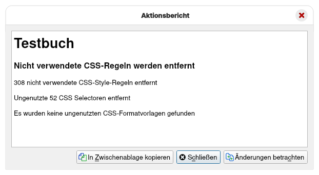 Wie man sieht wurden immerhin über 300 unnötige CSS-Regeln entfernt. Das Buch sieht danach keinen Deut anders aus. Die CSS-Regeln wurden schlicht nicht verwendet und waren überflüssig.