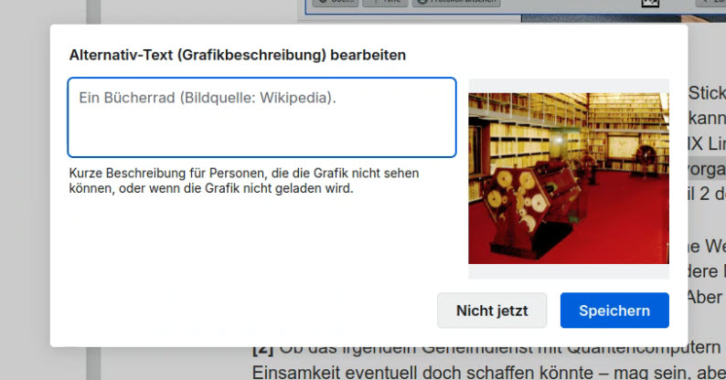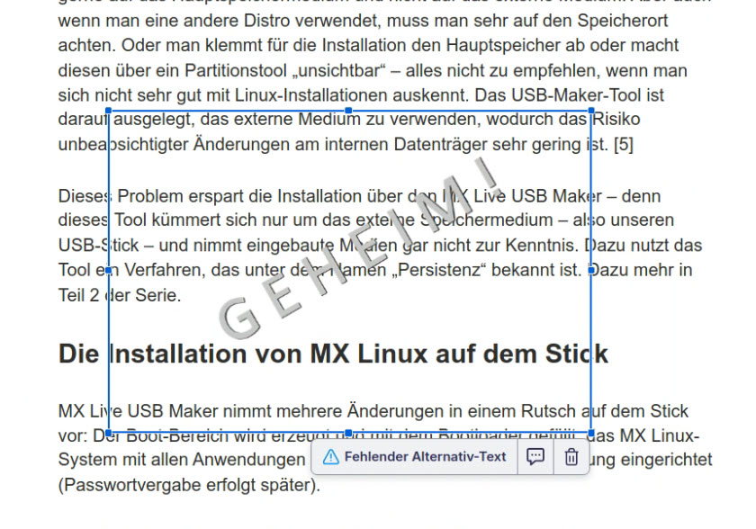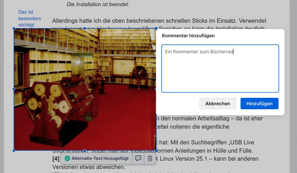 Allerdings muss man sich eine freie Stelle im Dokument dafür suchen, sonst wird bestehender Text überdeckt. Dem eingefügten Bild lässt sich eine Kommentierung hinzufügen.