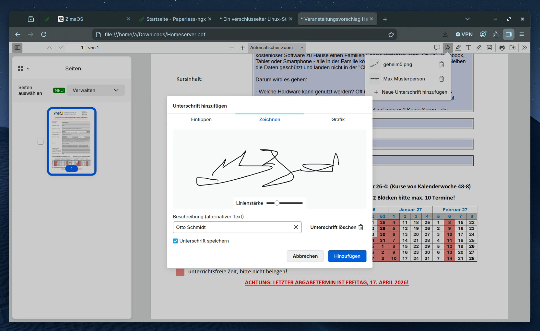 Dass man die Formularfelder eines PDF-Dokuments direkt im Browser ausfüllen kann, ist eine feine Option. Eintragen, speichern einschließlich der Einträge und an eine Mail anhängen wird dadurch sehr einfach. Eine digitale Signatur, wie sie gelegentlich im geschäftlichen Umfeld notwendig ist, gibt es nicht. Dafür ist aber die "handschriftliche" Variante gut gelöst, die in vielen Fällen absolut ausreichend ist (z. B. bei Honorarverträgen mit Bildungseinrichtungen). Auch die Speichermöglichkeit der Unterschrift finde ich für zuhause sehr nützlich. Für die Arbeit oder unterwegs kann die Option der Speicherung deaktiviert werden.