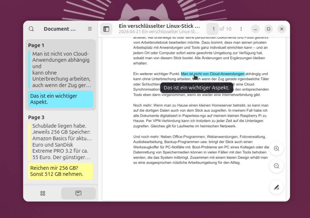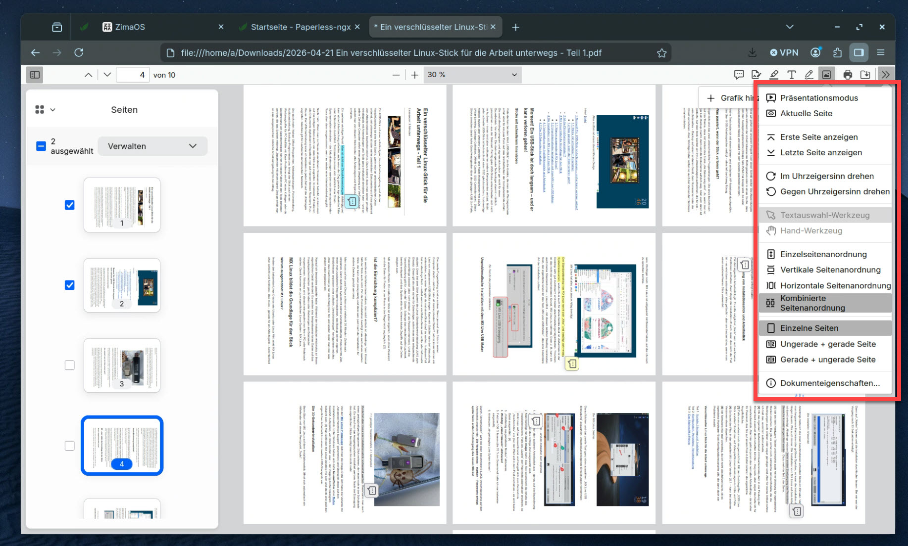 Dafür habe ich bisher das Tool PDF Arranger genommen, das nun seltener zum Einsatz kommen wird.