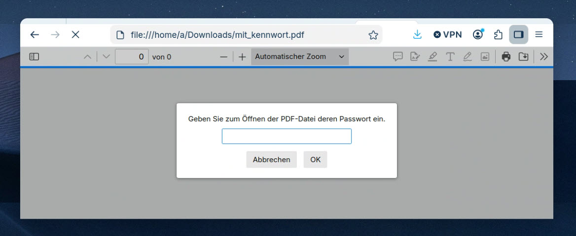 PDF-Dokumente, die mit einem Passwort geschützt wurden, können ebenfalls direkt in Firefox geöffnet werden: