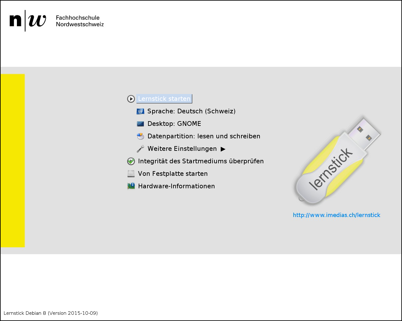 Dies ist ein "richtiger" Lernstick, der (mit Zusatz-Programmen und Einstellungen an die eigenen Bedürfnisse angepasst) schliesslich vervielfältigt wird.