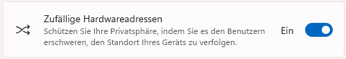Abb. 3: Diese Windows-Einstellung für WLAN bewirkt bei zwei der drei beobachteten Win 11 Notebooks - NICHTS! Beim dritten wird sie erst nach Löschen und Neuanlegen des aktuellen WLAN-Netzes wirksam.