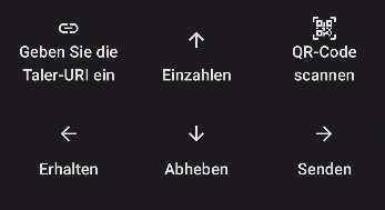Die möglichen Transaktionen werden durch das Aktivitätenmenü in der Taler-Wallet abgebildet. Klickt man auf das Taler-Logo, werden die Aktivitäten eingeblendet: