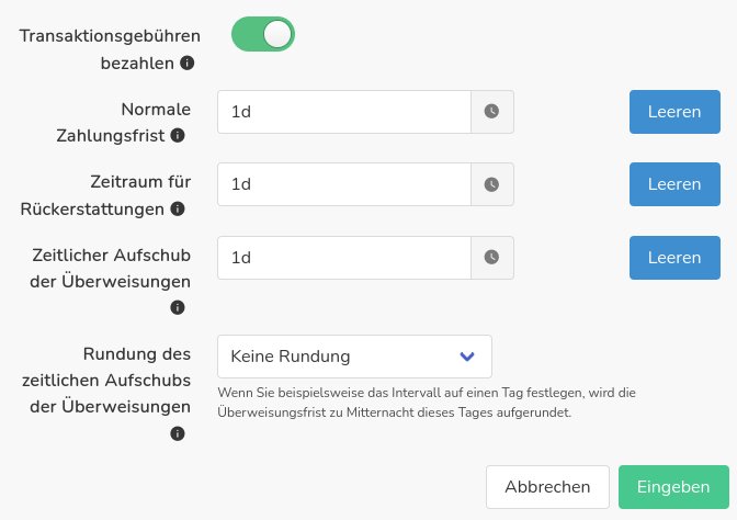 Hier ist es wichtig, bei jeder Änderung in einem Kapitel auf "Eingeben" zu klicken, da ihr ansonsten die Einstellungen verliert. Zu Testzwecken empfehle ich, die zeitlichen Einstellungen auf 1 Tag zu setzen. Ansonsten wartet ihr ewig, bis ihr etwas überprüfen könnt. Das gilt insbesondere für den "Zeitlichen Aufschub der Überweisungen". Damit regelt ihr, wie lange es dauert, bis Überweisungen aus der Exchange auf euer Zielkonto dauern. Achtung: Diese Einstellung gilt nur für Transaktionen, die nach der Änderung dieser Einstellung stattgefunden haben.