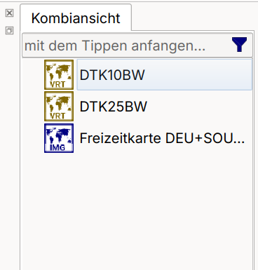 Die Idee ist, dass je nach Zoomlevel die am besten geeignete Karte verwendet wird. DTK10BW, bei der auch Straßennamen angegeben sind, für die großen Zoombereiche. Für die mittleren Zoombereiche dann DTK25BW, deren Maßstab gut geeignet für Wanderungen u.ä. ist. Für alles andere soll dann die Freizeitkarte angezeigt werden.