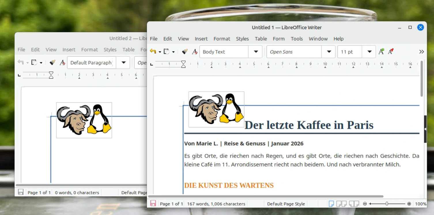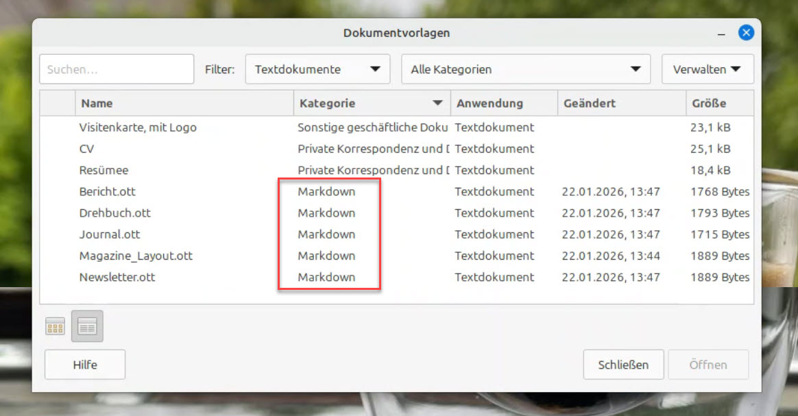 Schon länger schlummert im Code von LibreOffice die Funktion, Markdown-Dateien ohne Umwege zu öffnen und zu speichern. Collabora Desktop hat die Option schon vor einigen Wochen auf public gestellt [1]. Nun wird der entsprechende Menüpunkt auch bei der neuen LibreOffice-Version 26.2 [2] zugänglich sein. Wenn man den Import mit Writer-Templates kombiniert, ergeben sich neue Gestaltungsmöglichkeiten.