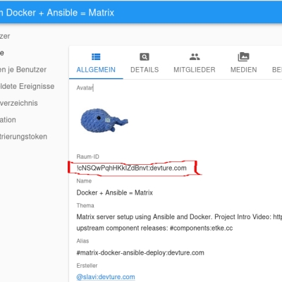 ) öffnest du den entsprechenden Raum, dann zeigt dir die URL in der Adresszeile die ID an – sie beginnt immer mit einem Ausrufezeichen, z. B.!cNSQwPqhHKkIZdBnvt:devture.com