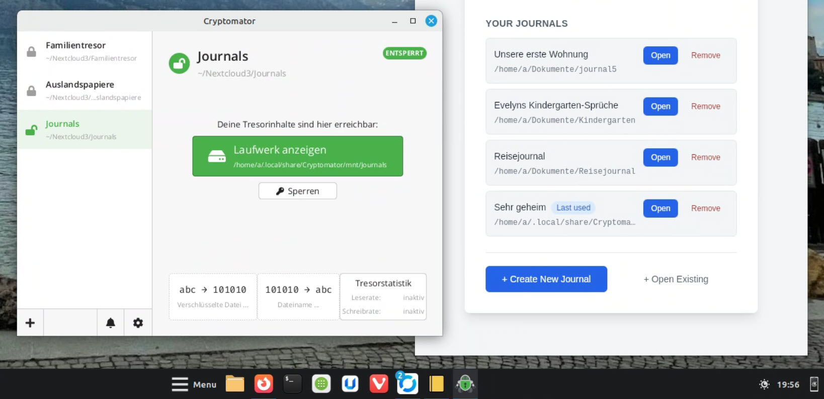 Es können beliebig viele Journale angelegt werden. Man wählt einen belieben Pfad aus, vergibt einen Namen für das Journal, und sichert es mit einem guten Passwort - fertig.