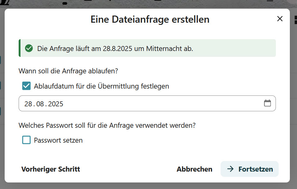 Weiterhin kann man ein Ablaufdatum setzen und ein Passwort vergeben: