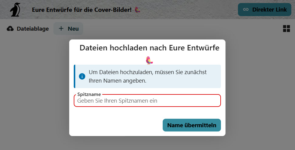 Bis zur Nextcloud-Version 29 landeten alle Uploads in einem einzigen Ordner, so dass eine Zuordnung gelegentlich schwierig war. Ab Version 30 erscheint aber beim Aufruf des Links eine kleine Namensabfrage. Ob man da nun "Luzie vom Dach", "Arbeitsgruppe 42" oder "Udo" eingibt, ist jedem selbst überlassen: