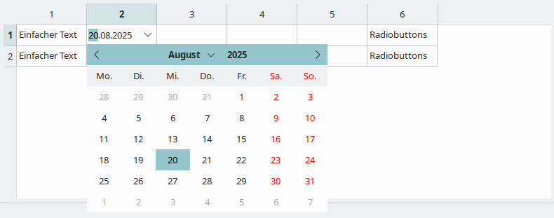 Das Datum wird jetzt korrekt dargestellt, aber wir haben noch keinen Editor. Würden wir jetzt doppel-klicken, könnten wir das Datum als Text bearbeiten, aber das ist wenig sinnvoll.