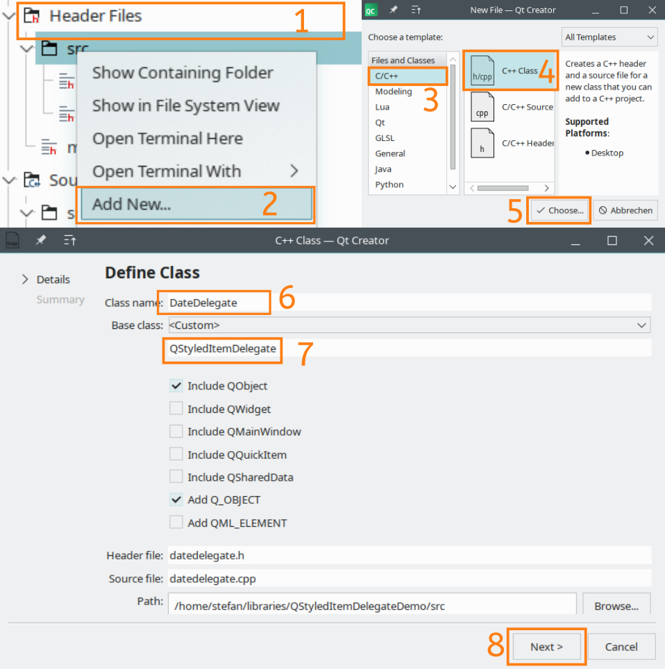 " -> "QStyledItemDelegate" (die Grundlage für "alle" Delegates) - Next
