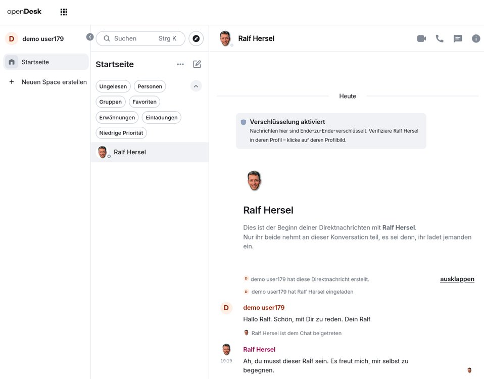 Hier muss man im Hinterkopf behalten aus was openDesk hervorgegangen ist und wann das entwickelt wurde. Da gab es noch gar kein Nextcloud-Talk