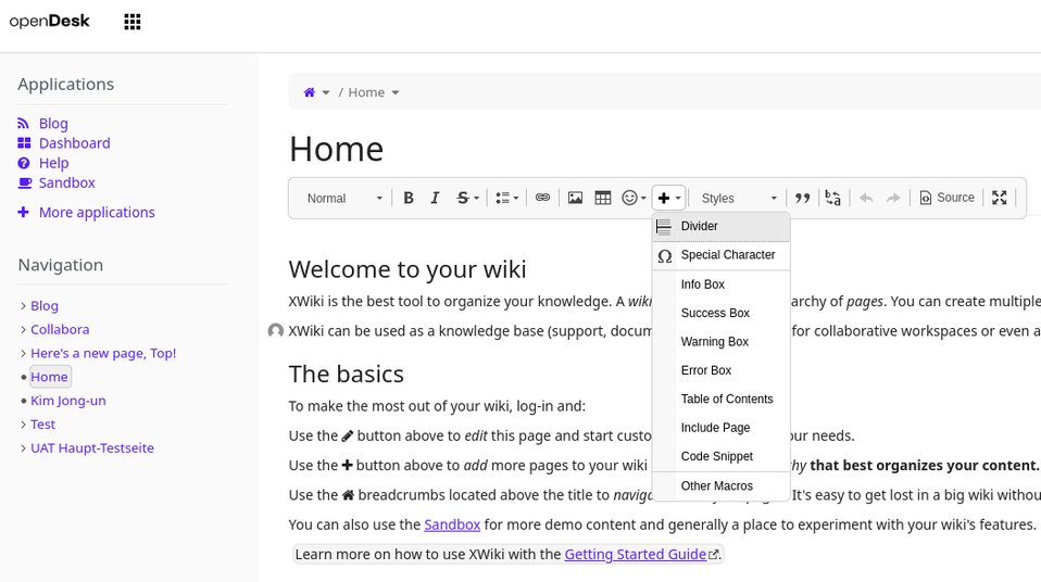 Somit eignet sich das Wiki in openDesk gut für eine Wissensverwaltung, die Prozessdokumentation oder das Intranet einer Organisation.