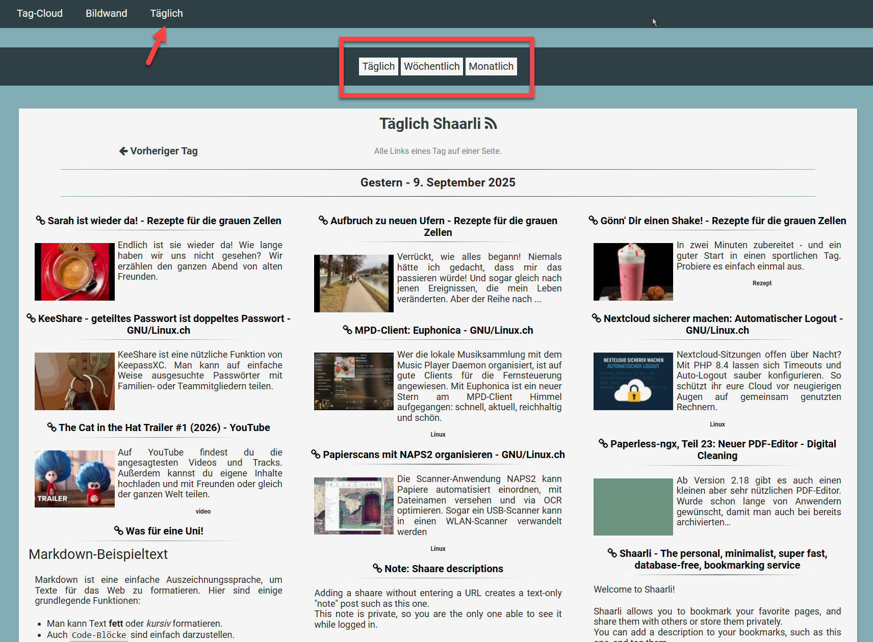 Es gibt eine öffentliche Beispiel-Instanz https://demo.shaarli.org/