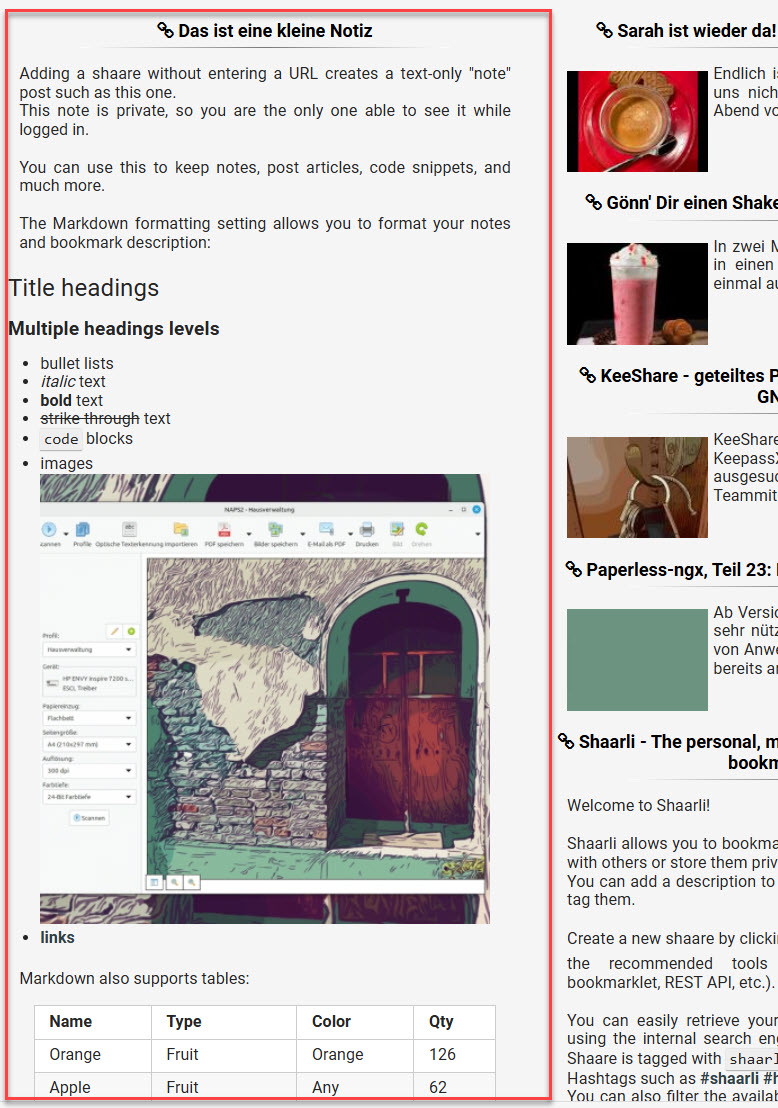 Shaarli habe ich seit 1,5 Jahren im Einsatz, benutze es aber eher als „Link-Halde“.