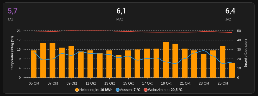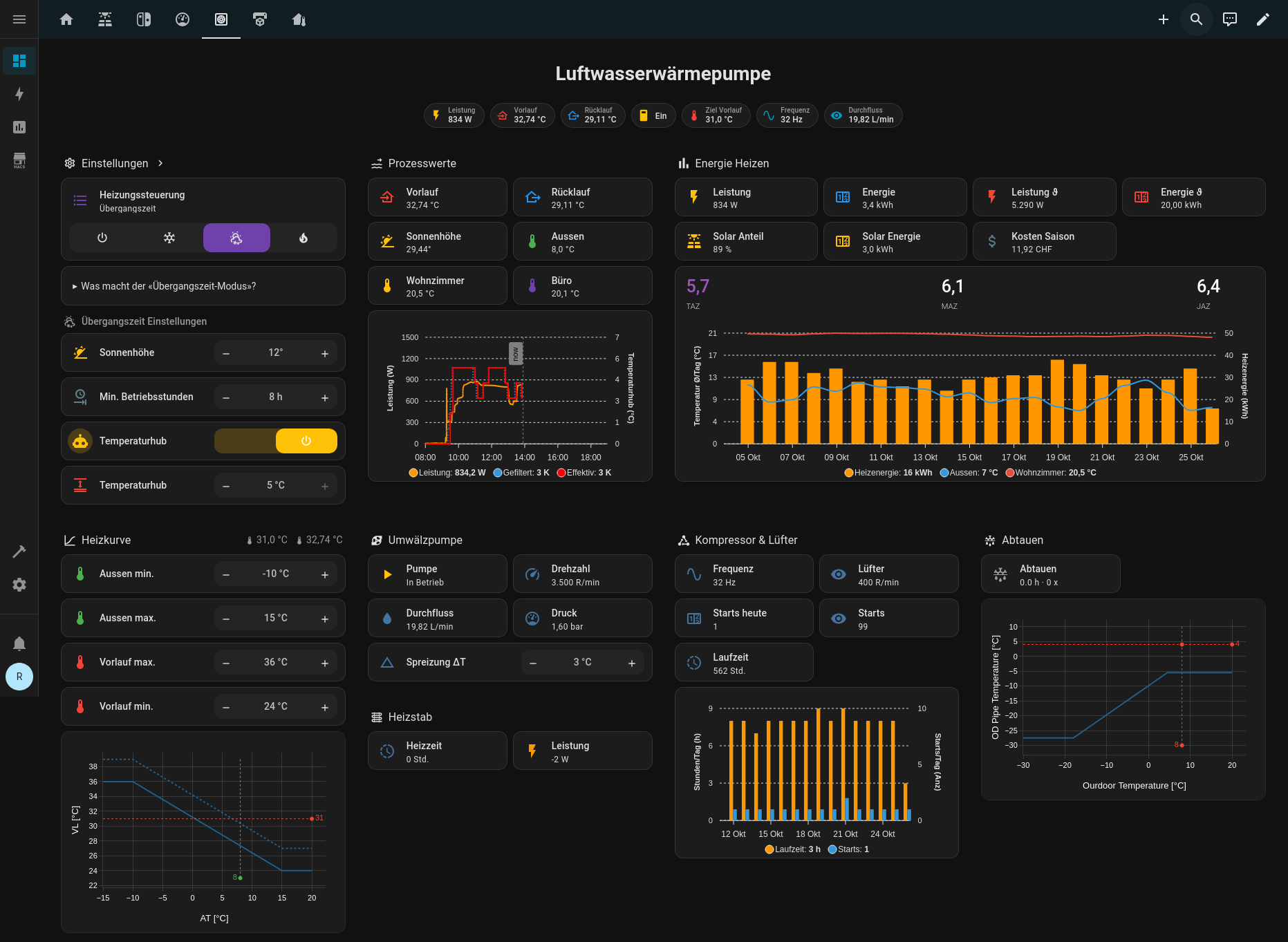 Die Steuerung erfolgt mit Home Assistant. Heishamon dient als Schnittstelle zur Wärmepumpe.