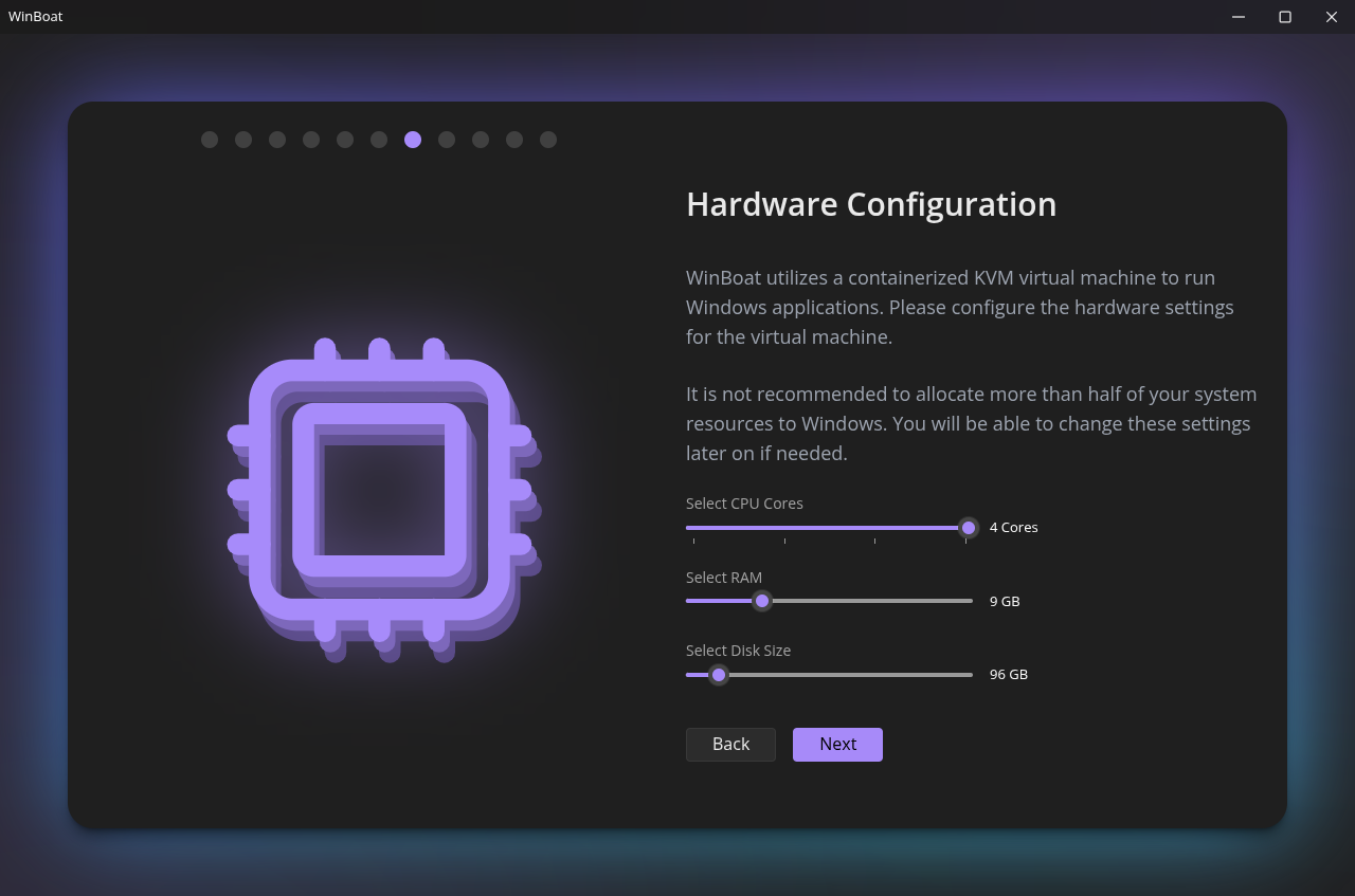 Da WinBoat KVM als Unterbau verwendet gibt es auch weiterhin die typischen Probleme: