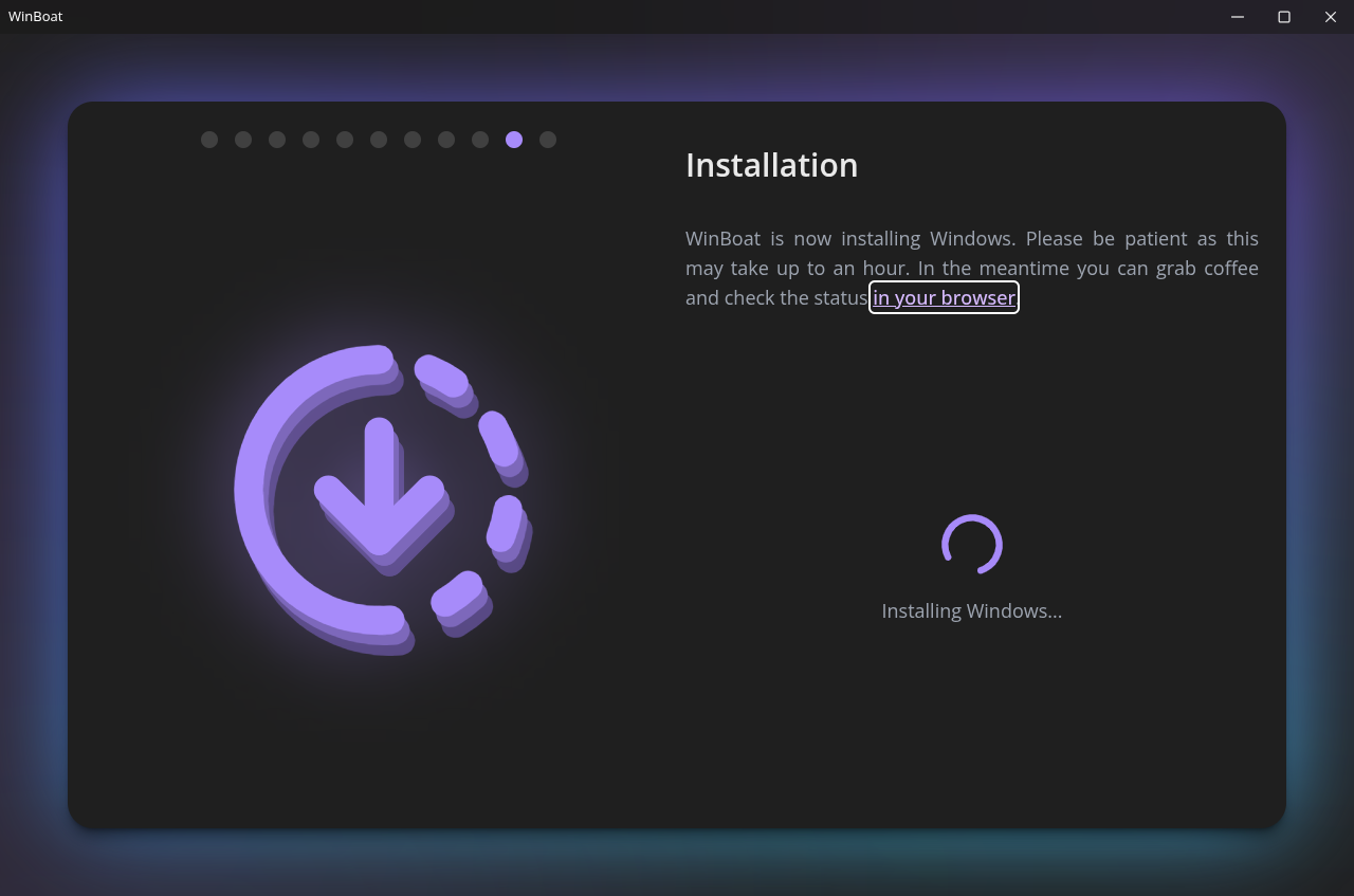 Im Browser kann die Installation präziser und feingranularer überwacht werden.