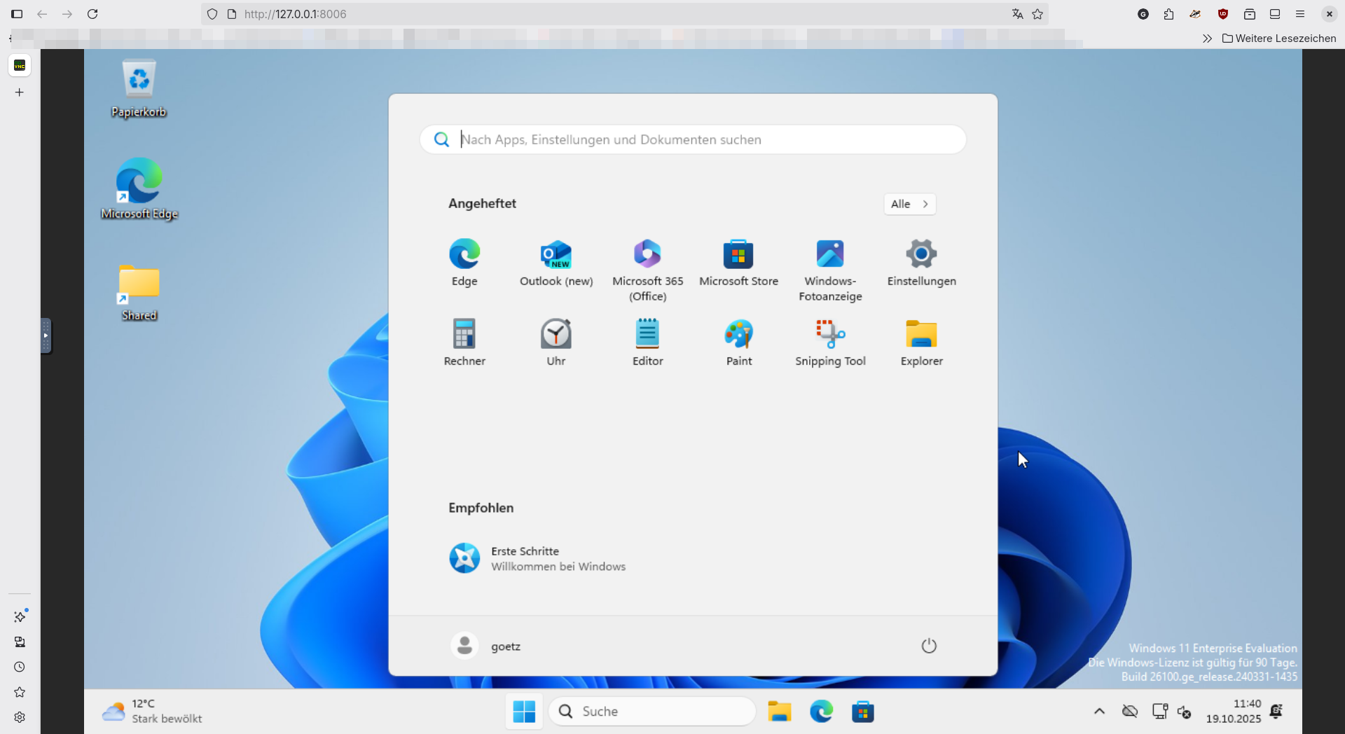 Das Aufsetzten des Windows gestaltet sich sehr einfach, einzig die Installation der Abhängigkeiten kann von Distribution zu Distribution komplex sein. Auf meinem Fedora Silverblue ging es jedoch problemlos.