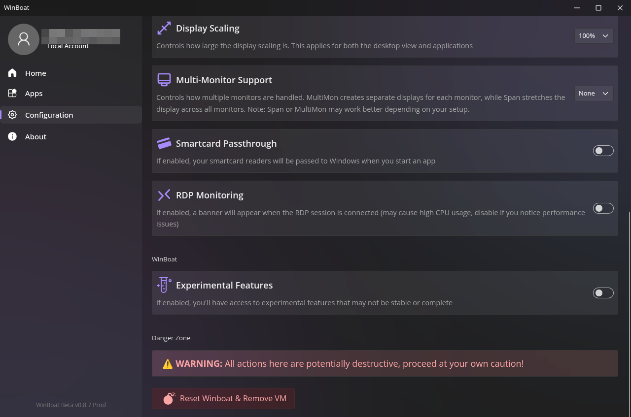 Hach könnte man das nicht einfach lösen: WinBoat ist eine Möglichkeit. Die Software steht unter einer MIT-Lizenz und wird von dem Entwickler TibixDev vorangetrieben. Die Software verwendet ein in TypeScript geschriebenes Frontend, welches als Appimage gestartet wird. Zur Verwendung nutzt die Software Docker, FreeRDP und KVM auf dem Host und steuert damit die Windows Installation.