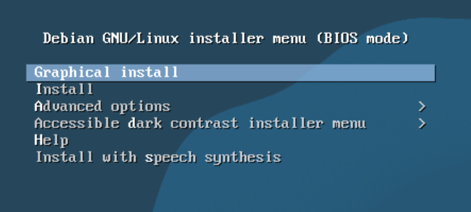 Im Bootmenü kann die grafische Installation gewählt werden: