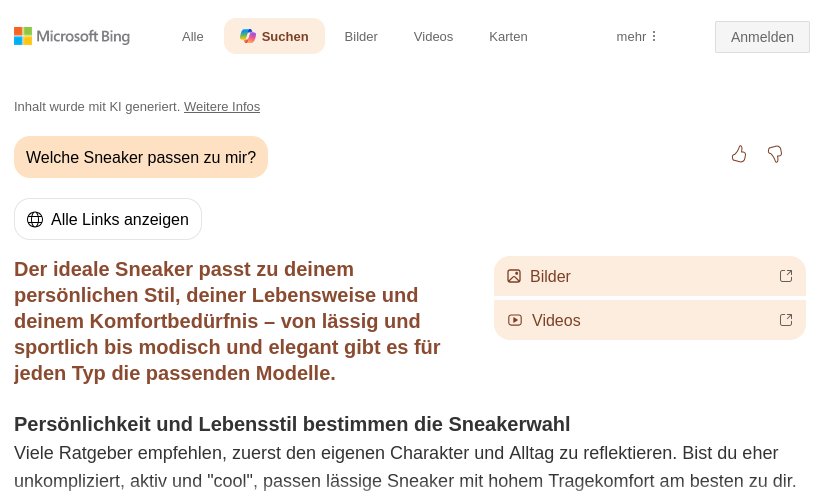 Doch jetzt beginnt eine neue Ära. Viele Anwender:innen verwenden KI-Chatbots wie ChatGPT, Perplexity, Gemini usw. lieber, als die Google-Suche, Microsofts Bing oder andere (klassische) Suchmaschinen. Dieses Momentum möchten die Suchseiten nicht verpassen. Bing prescht hier vor: