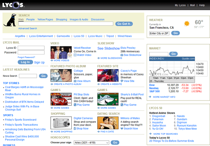 Lycos - Bildquelle: https://www.webdesignmuseum.org/gallery/lycos-2005